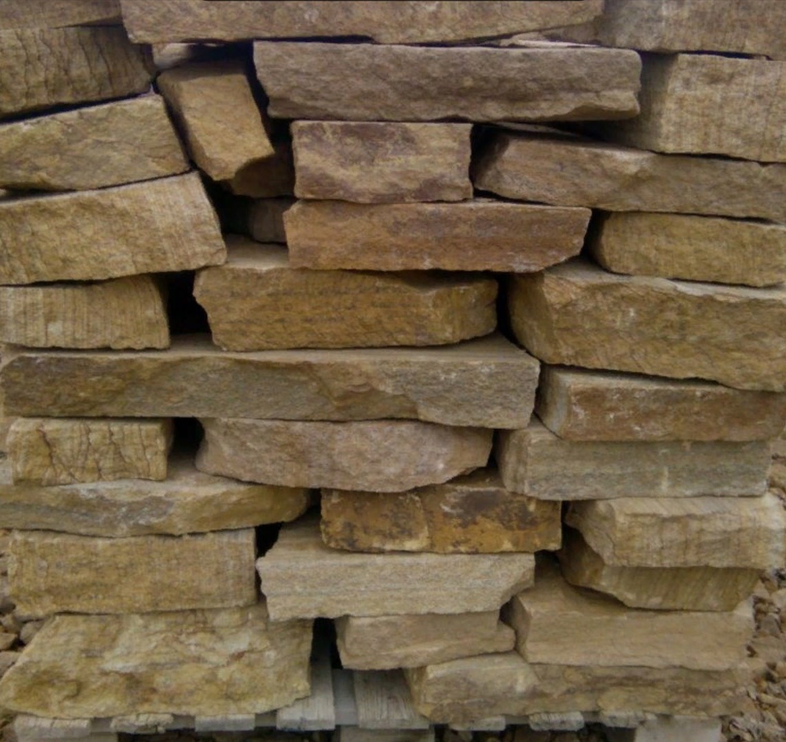 • Kamenclub.ru: Песчаник пластушка желтый с рисунком (7-15 см)  купить в Брянске плитняк - пластушка - бут желтый песчаник 10200 руб/м3   фото КАМЕНЬ КЛУБ