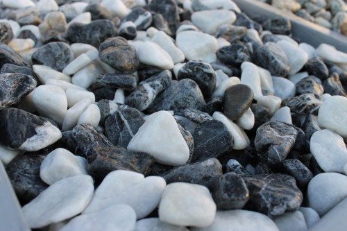 Галтовка щебня мраморного (белая и черная галька микс)